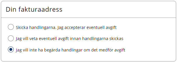 6. Under "Din fakturaadress", välj någon av de två sista alternativen. Du kommer ändå inte behöva betala något, om du inte beställer mer än 9 handlingar (1 handling brukar motsvara 1 PDF)