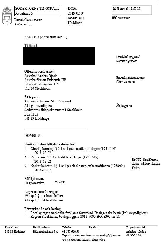 Syftet med Arkivet är endast att lära er om hur ni själva kan få insyn i svenska myndigheters arbete. De domar, förundersökningsprotokoll och liknande som publiceras eller länkas på eller via denna hemsida visas enbart för att ni ska få en inblick till hur rättsväsendets arbete går till. Denna hemsida finns endast för att jag vill dela min kunskap med er.Jag avråder er starkt från att publicera dokument eller sprida information om andra i syfte att utsätta personer för andras missaktning.Skulle du hitta uppgifter på denna sida som är dina så kontakta mig via formuläret här så löser vi det.Tack!